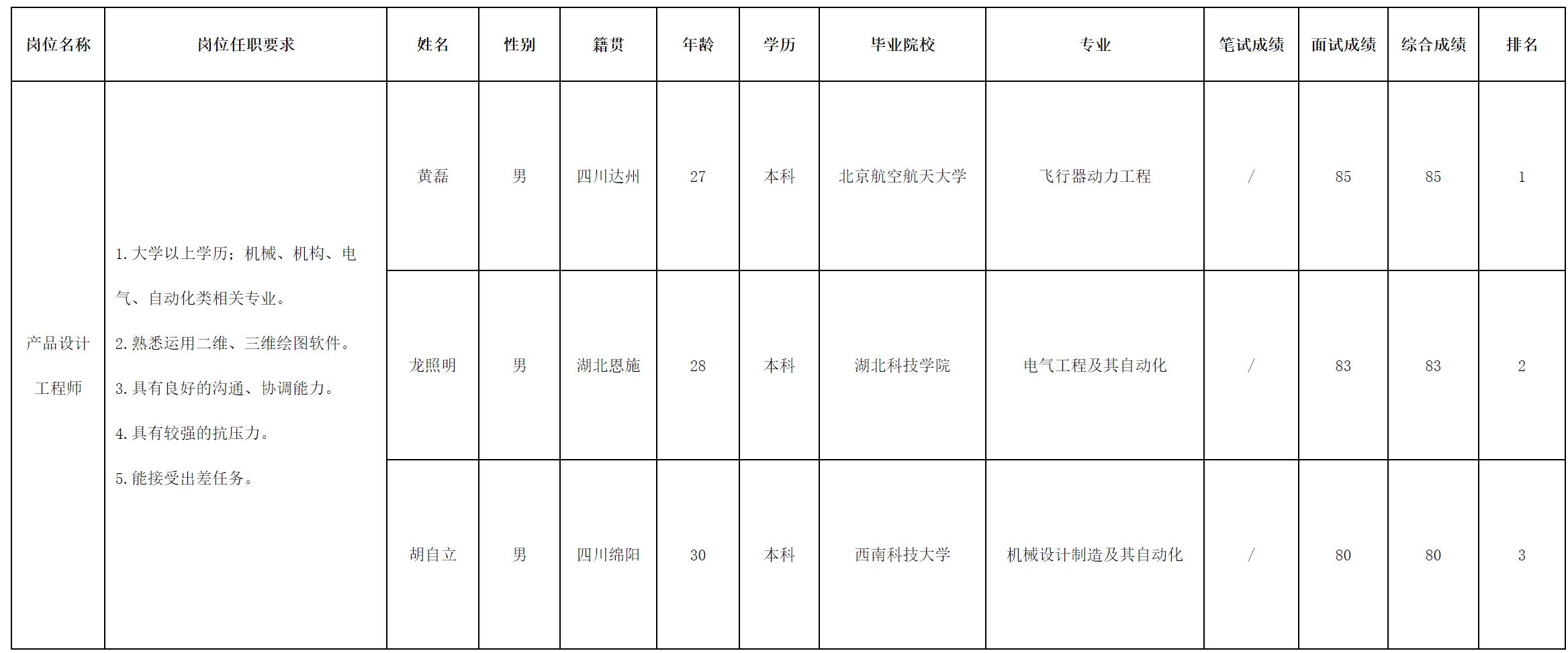 根据四川华丰科技股份有限公司发布的招聘公告及招聘相关规定,现将测试成绩予以公示。