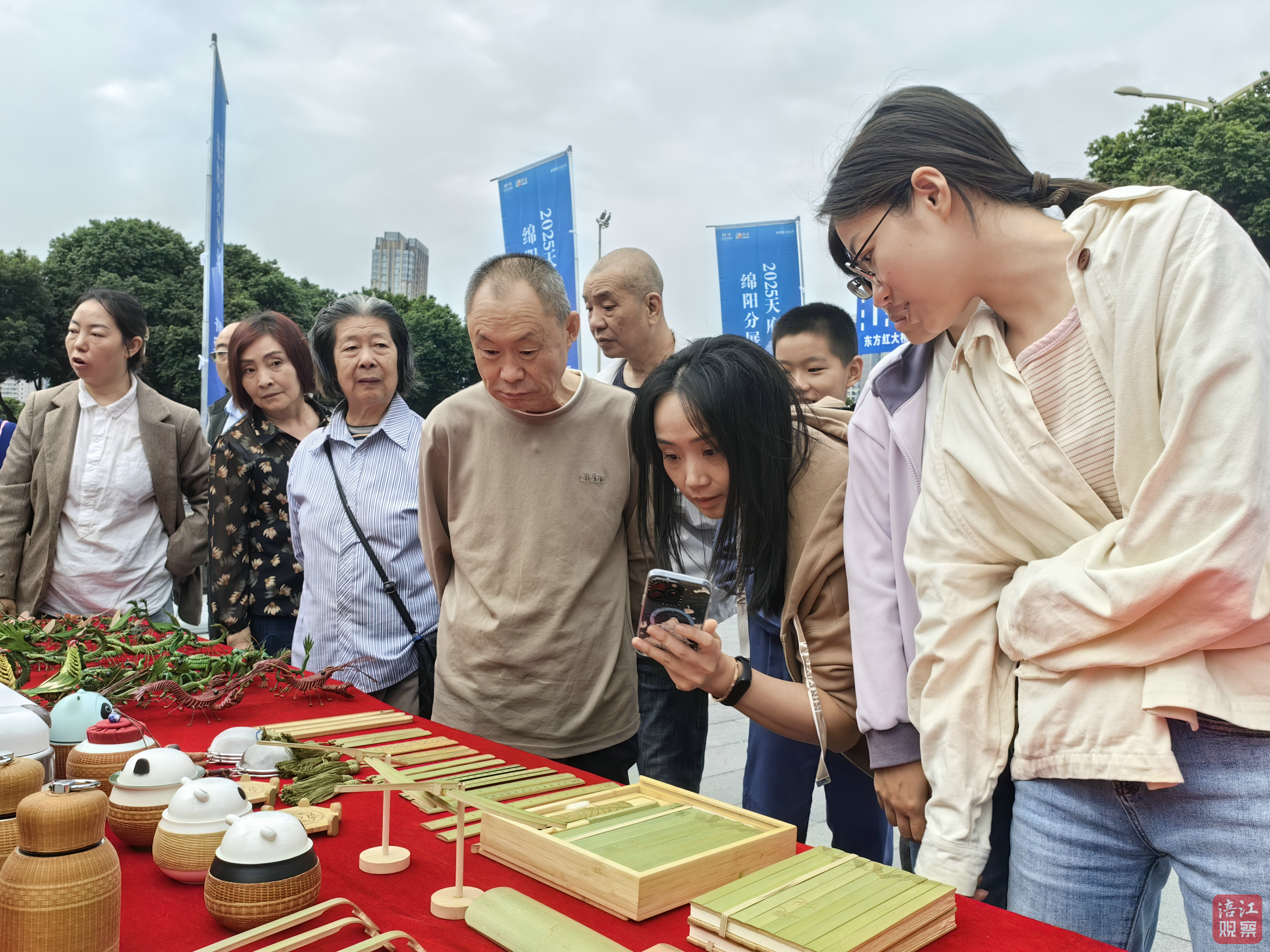 2025天府书展绵阳分展场启动仪式现场,市民了解非遗文创产品