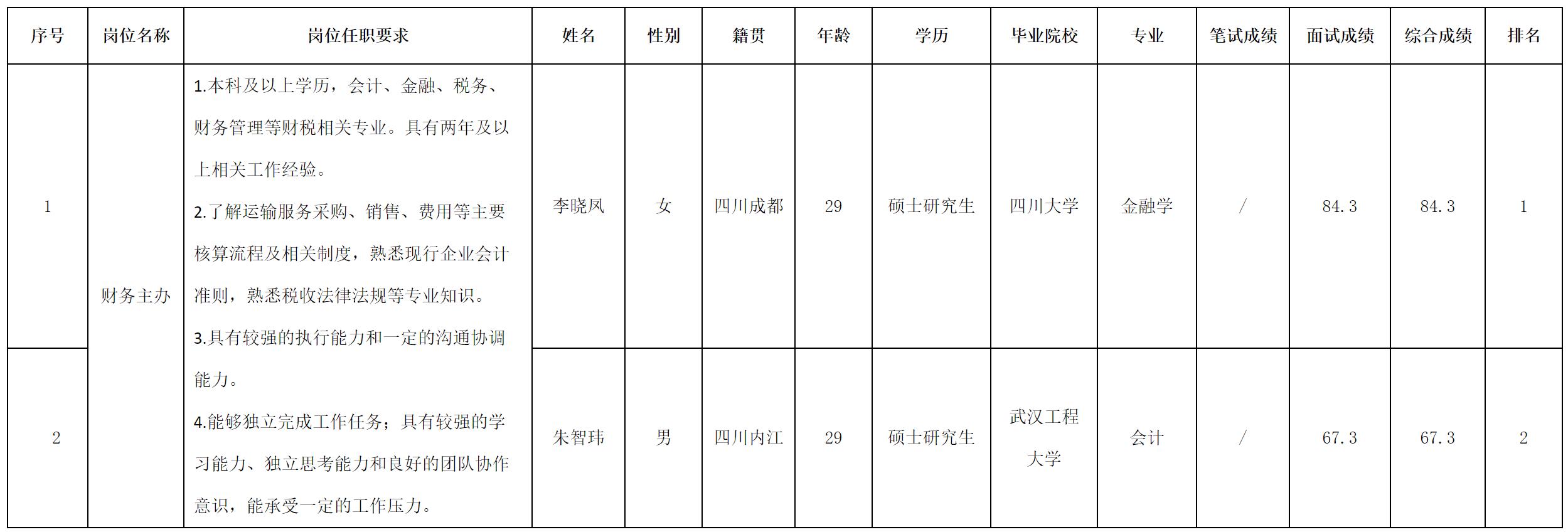 根据四川长虹民生物流股份有限公司发布的招聘公告及招聘相关规定,现将测试成绩予以公示。
