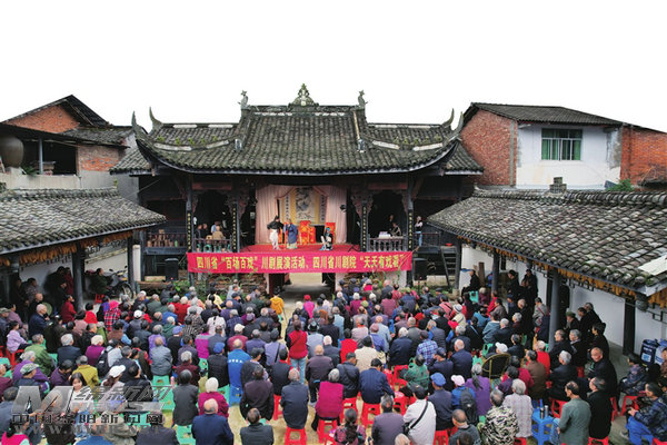 四川省“百场百戏”川剧展演走进江油重华古镇,演出现场座无虚席。