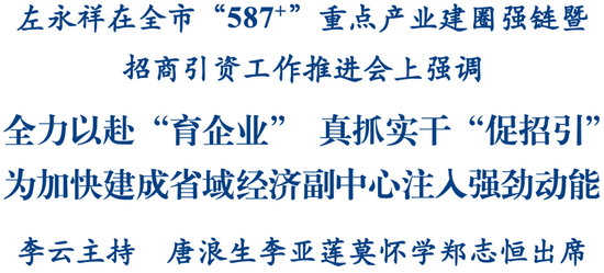左永祥指出,要强化统筹协调,推动各项工作落到实处。要各负其责、各尽其能,各链长要用好“一链一专班”机制,牵头做好协调服务、督促指导等工作;要强化部门协同联动,加强产业运行监测分析,动态调整工作举措;各产业承载地要立足自身载体优势,抓好企业引育、项目建设、要素匹配等工作,做到全周期管理、全要素保障、全方位提效。要纾困解难、做优服务,常态化落实“双提双解”工作机制,广泛收集解决企业困难问题,坚持“要素跟着项目走”,着力提升政策可及度,推动生产要素向优势产业和企业集聚。要多措并举、多点发力,聚焦“587+”产业体系加强干部培训,建立完善“招商实战练兵”机制,以干部提能促进产业提质、发展提速;扎实推进国家制造业新型技术改造城市试点、国家级中小企业数字化转型城市试点建设,促进产业结构优化和转型发展;紧盯项目落地建设,用好重大项目市领导提级管理等机制,促进项目投资早日见效、早结硕果。