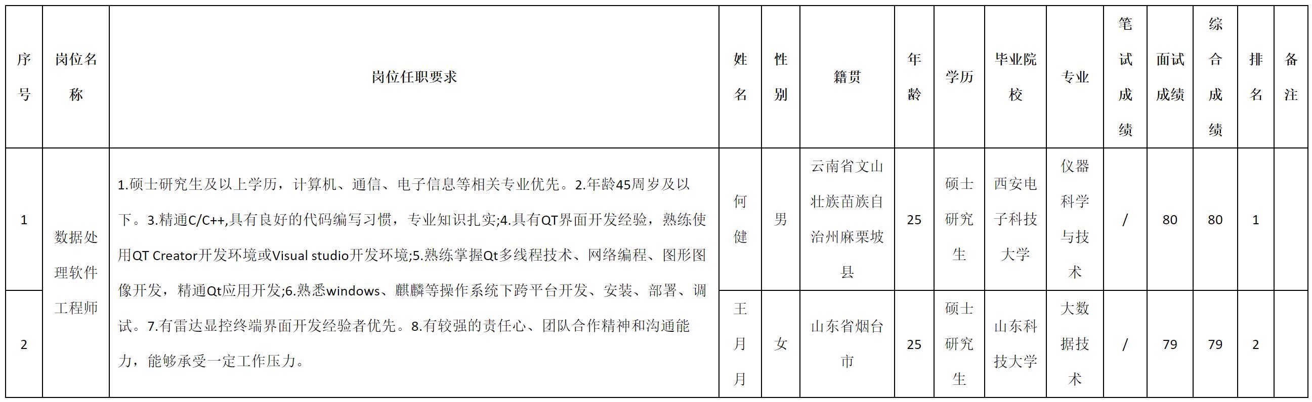 根据四川九洲防控科技有限责任公司发布的招聘公告及招聘相关规定,现将测试成绩予以公示。