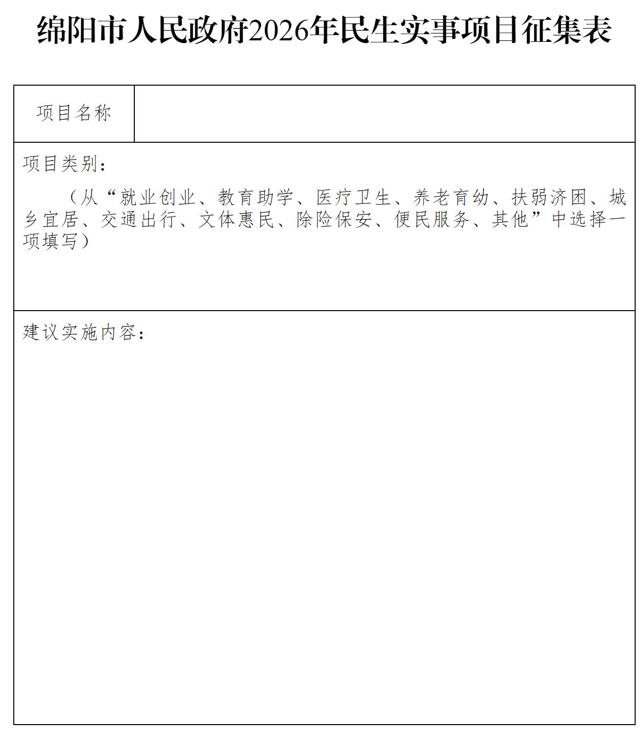 附件:绵阳市人民政府2026年民生实事项目征集表
