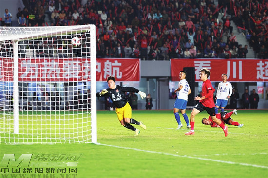 比赛第30分钟,绵阳队30号球员周翥禁区内接队友传中,高高跃起头槌建功,攻入本场比赛唯一进球。