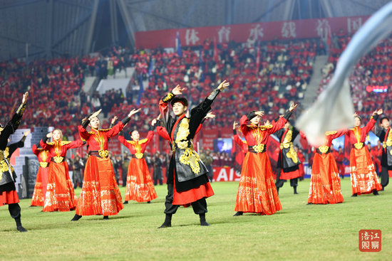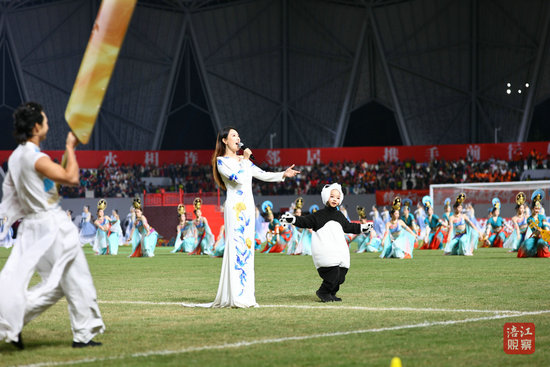 比赛结束后,近300名演职人员与球员一起和现场观众进行表演互动,在歌曲《相亲相爱》的温暖旋律中,为本场比赛画上圆满句号。
