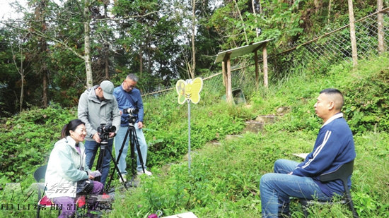 《两山行》栏目组采访关坝村生态巡护员。
