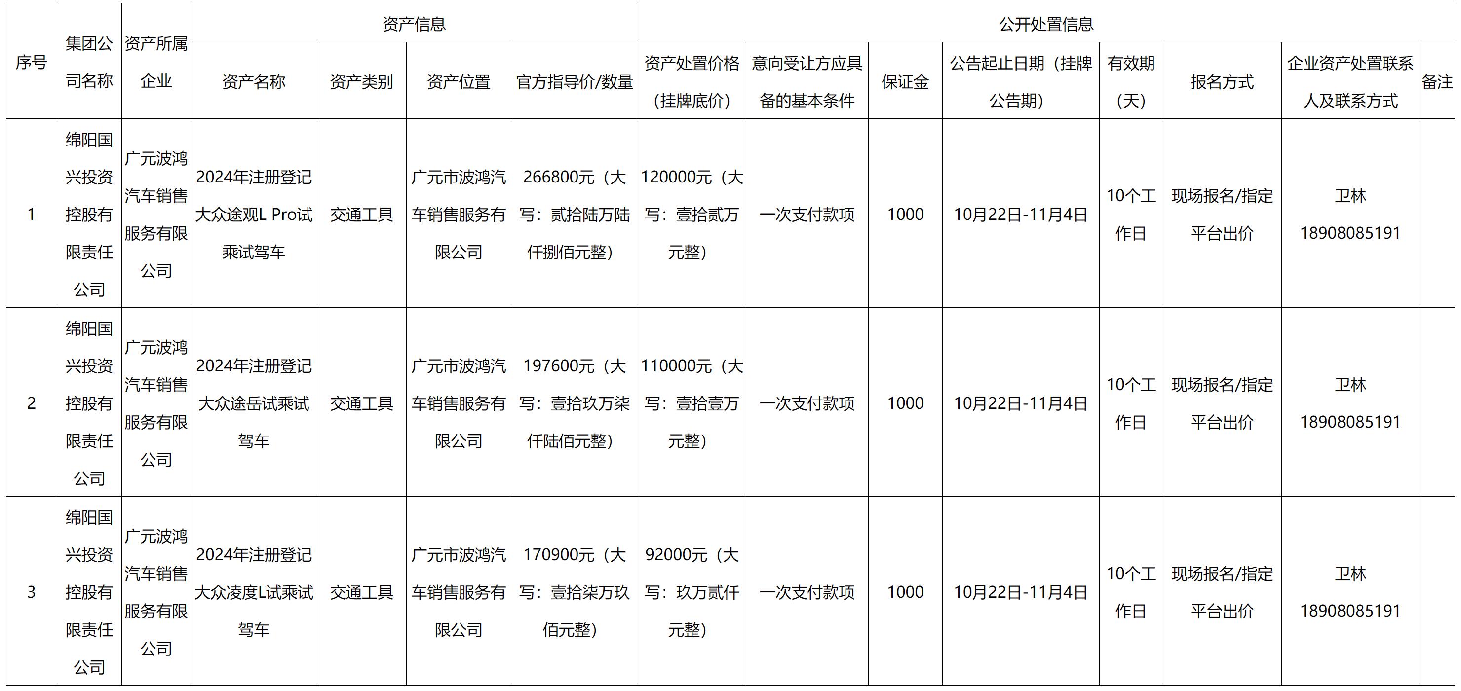 绵阳国兴投资控股有限责任公司资产处置公告