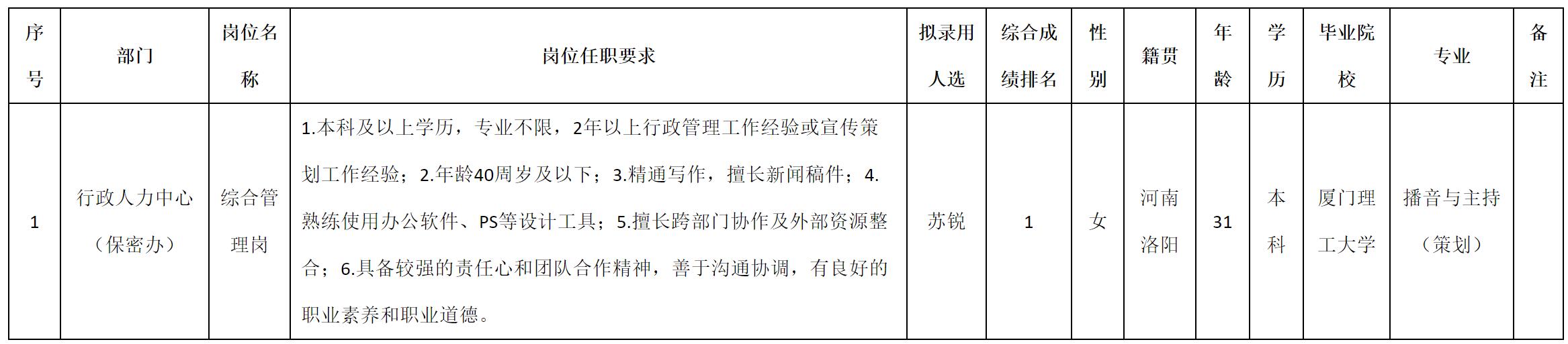 根据四川九洲光电科技股份有限公司发布的招聘公告及招聘相关规定,经测试、考察、体检等程序,拟录用苏锐同志到四川九洲光电科技股份有限公司工作,现予以公示,具体情况如下: