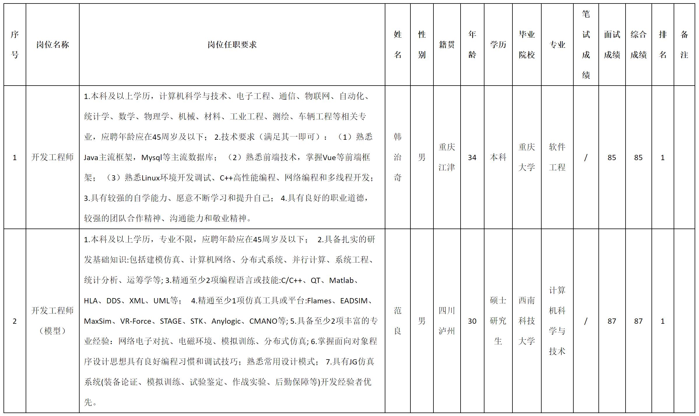 根据四川九洲投资控股集团有限公司软件与数据智能军团发布的招聘公告及招聘相关规定,现将测试成绩予以公示。
