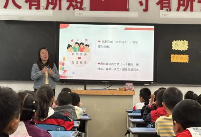 绵阳新闻网讯 为了更好地展现学校班主任的教育风采,10月22日上午,绵阳市万达学校万青圃名班主任工作室成员陶娟老师在二年级一班展示一堂微班会课。陶娟老师以“感恩陪伴,爱在行动”为主题的微班会活动,活动气氛活跃,学生积极参与,教育效果优良。该校分管领导、一二年级班主任及工作室成员参加了此次活动。