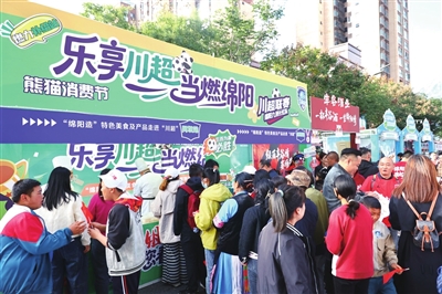 在“川超”阿坝赛场外,绵阳美食文化展人流如织。视觉绵阳资料图片