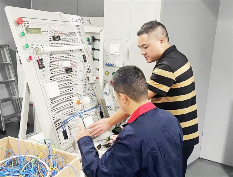 10月27日,秋意漫进四川九洲技师学院的实验室。白炽灯光透过窗,落在电子技术应用专业大二学生莫郎姐的指尖——有些青涩的双手,此刻正稳稳操作着器件,眉宇间藏着日复一日练习沉淀下的坚定。