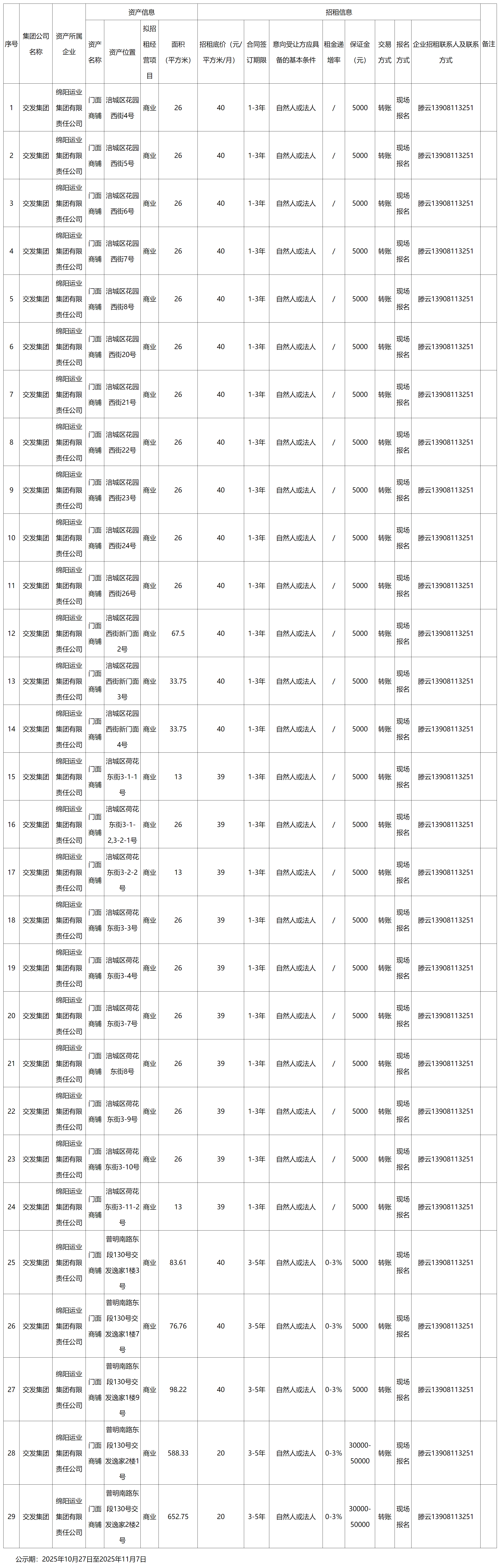 绵阳运业集团有限责任公司资产出租公告