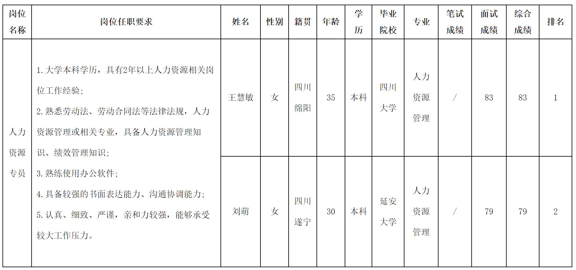 根据四川华丰科技股份有限公司发布的招聘公告及招聘相关规定,现将测试成绩予以公示。