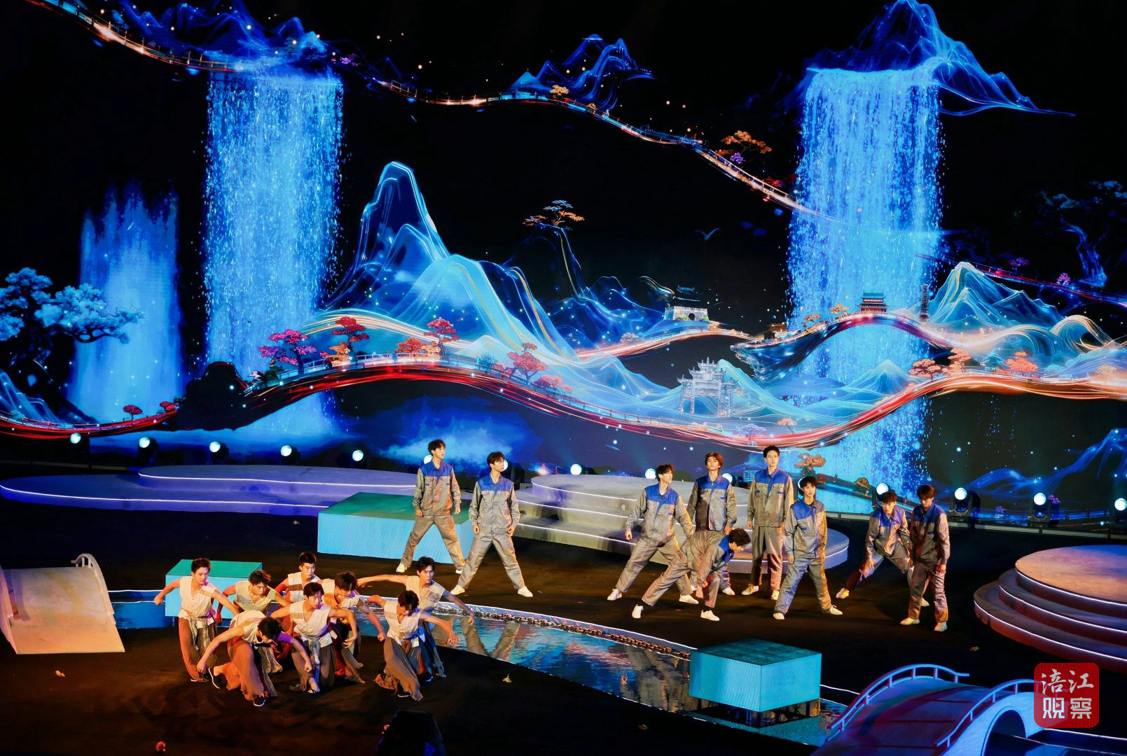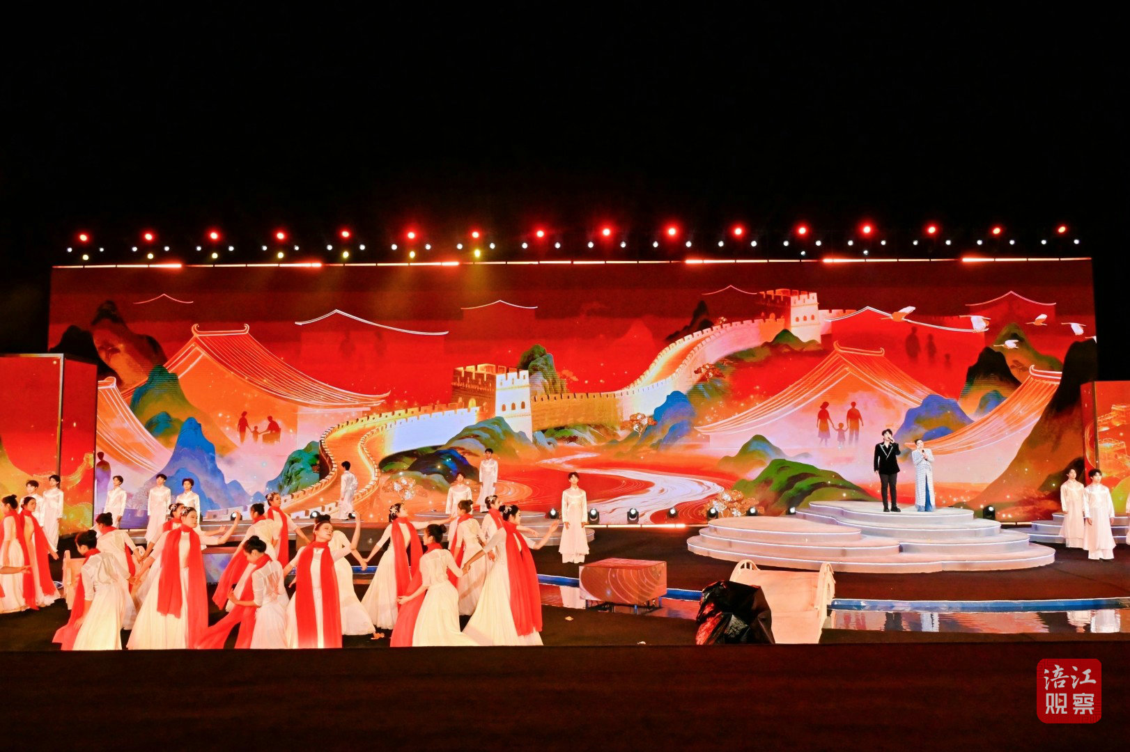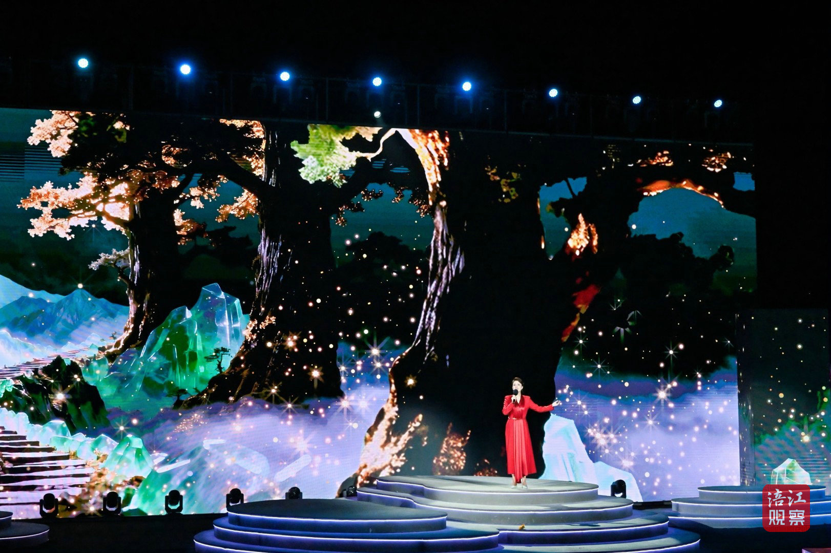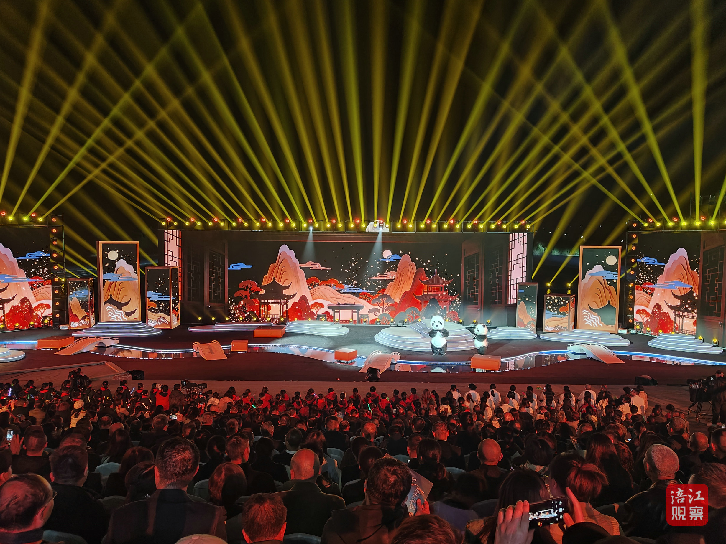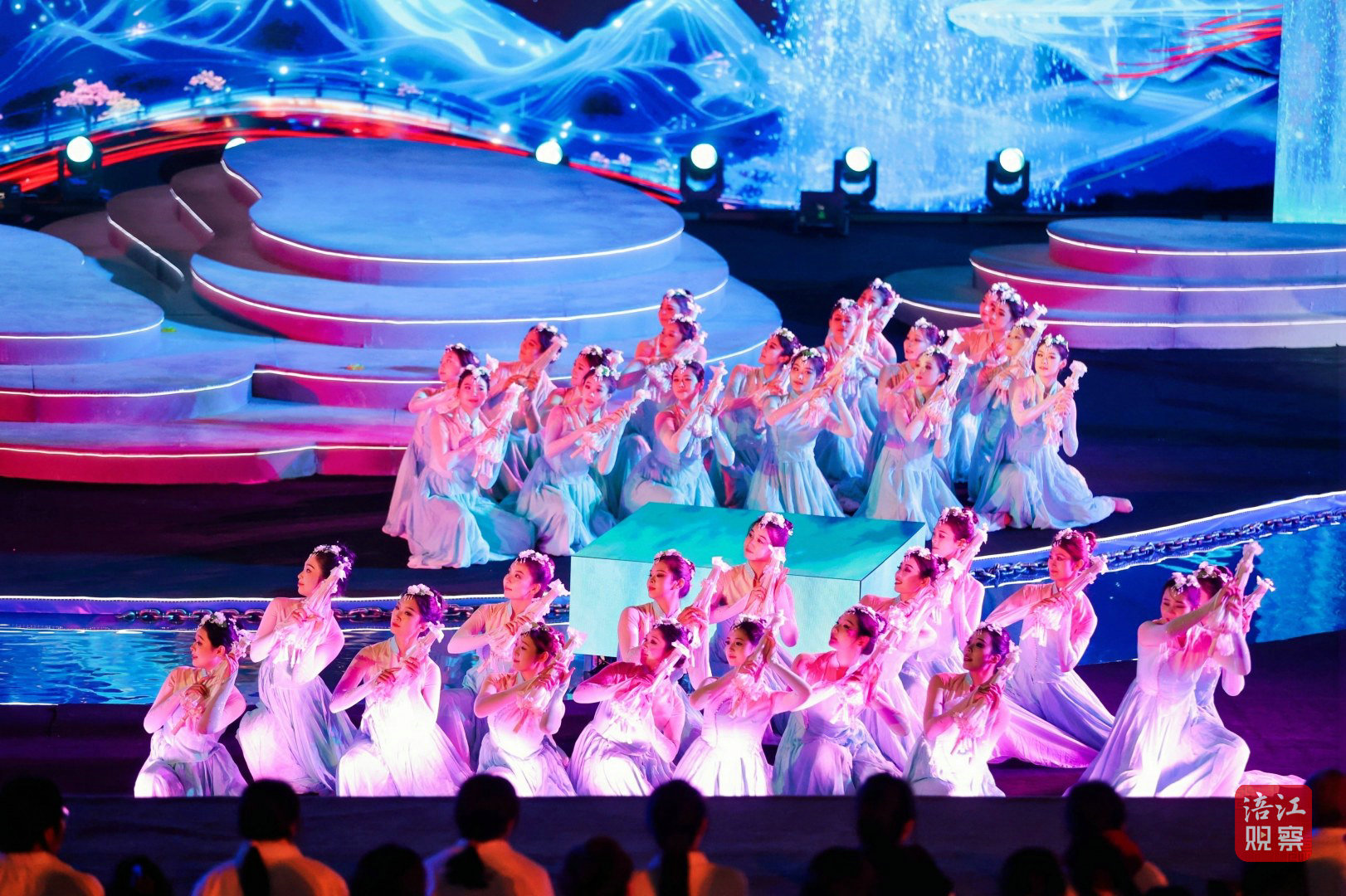 此次活动的舞台设计堪称一大亮点。超1000平方米的水上舞台融入了LED屏幕、激光投影、AI、机械装置、无人机等多种技术手段,为观众打造了一场全新的视听盛宴。
