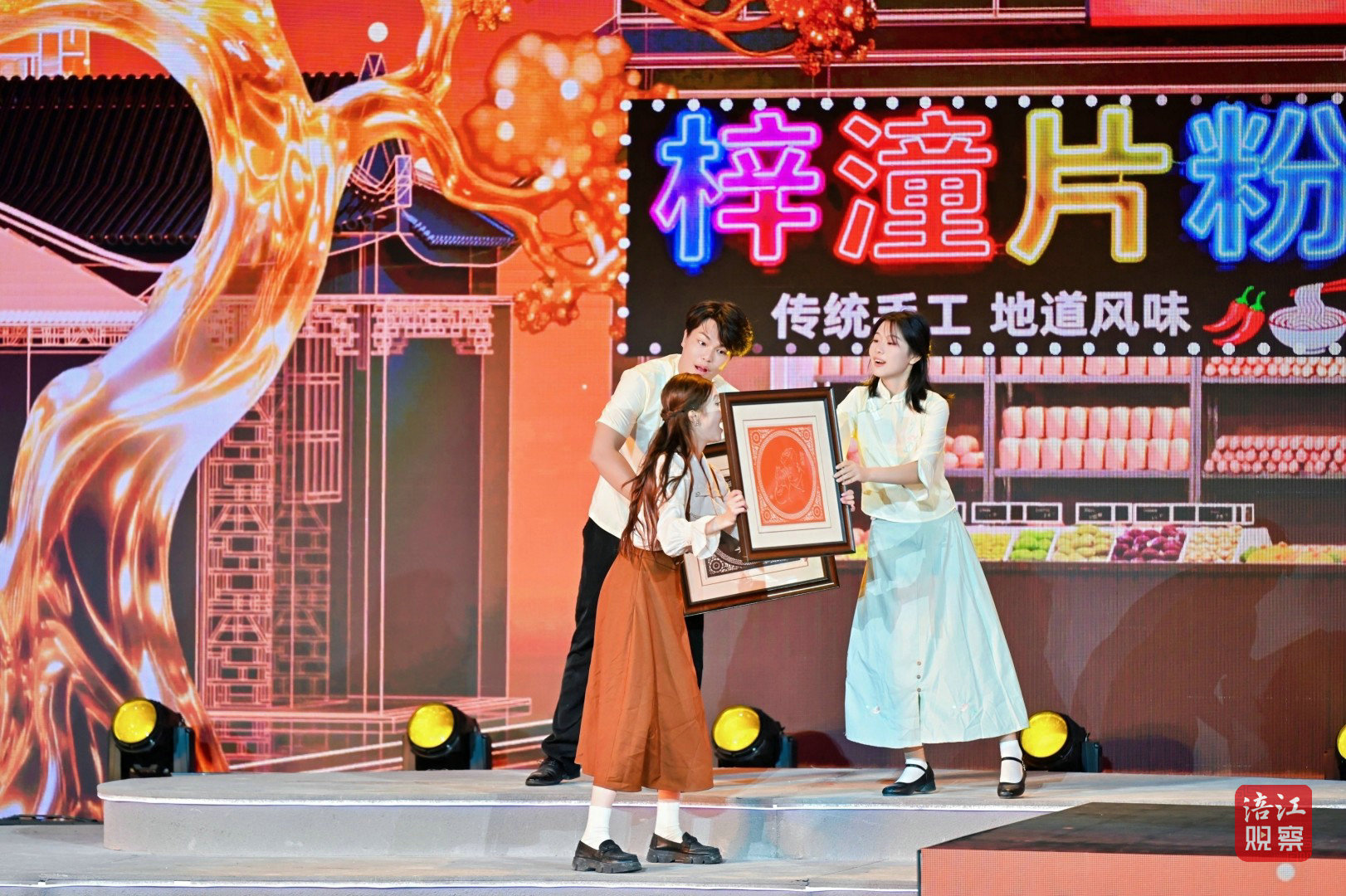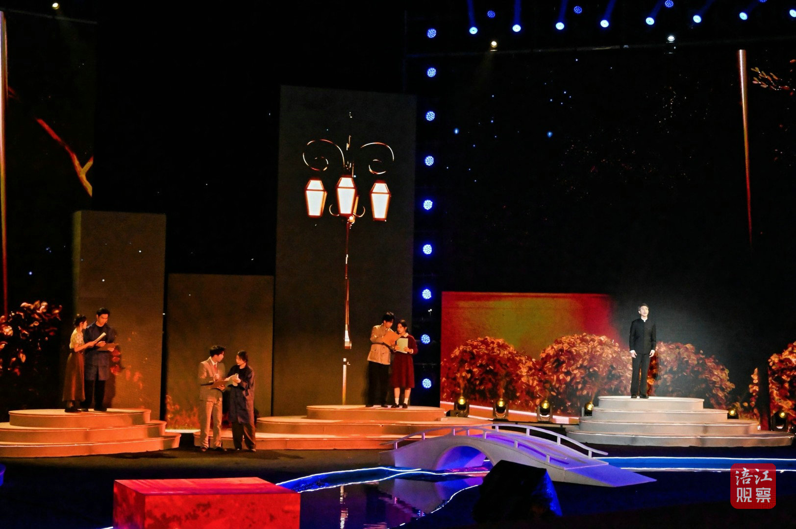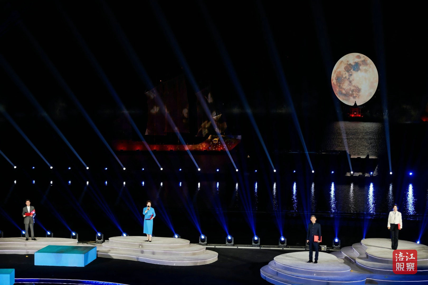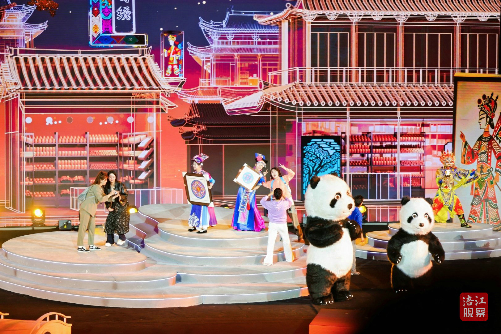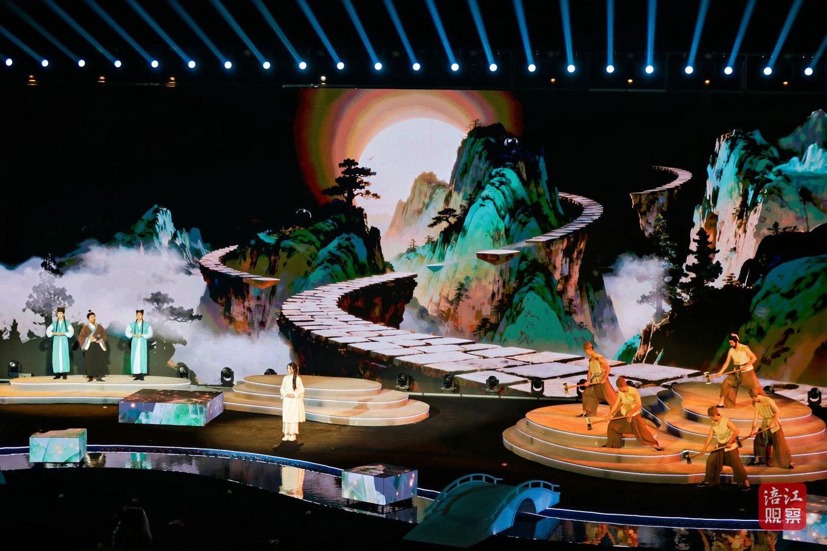 此次活动的舞台设计堪称一大亮点。超1000平方米的水上舞台融入了LED屏幕、激光投影、AI、机械装置、无人机等多种技术手段,为观众打造了一场全新的视听盛宴。