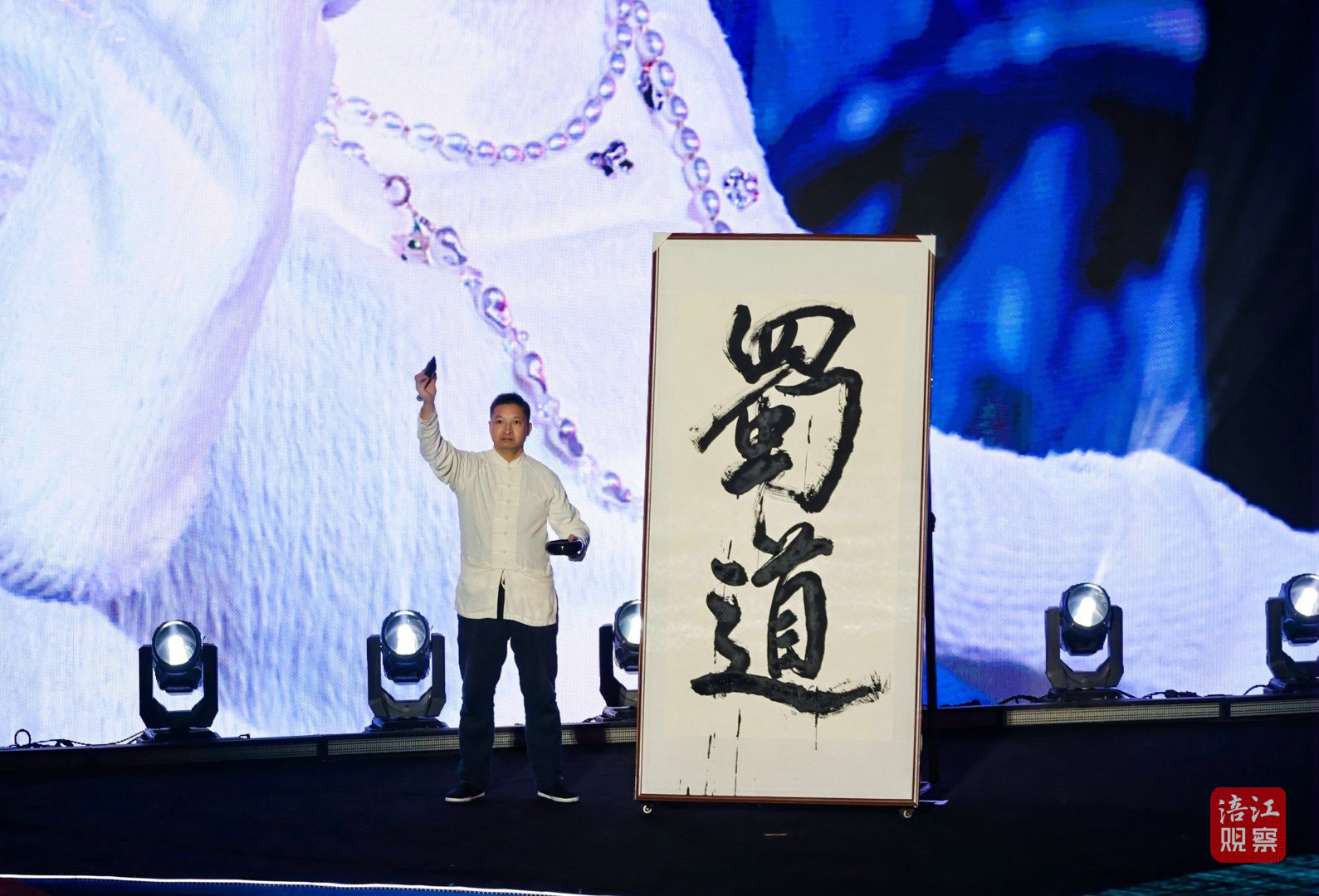 当舞台背景切换为翠云廊的壮丽景色时,观众仿佛置身于那片绿意盎然的古蜀道中,感受着历史的厚重与自然的魅力。