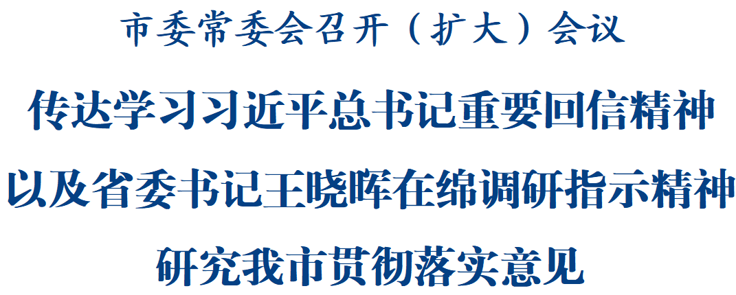 会议指出,习近平总书记近日给中国农业大学全体师生回信,在中国农业大学建校120周年之际,向全校师生员工、广大校友表示祝贺,希望大家弘扬优良办学传统,矢志强农报国,努力培养更多知农爱农的专业人才,让广大教育、农业工作者备受鼓舞,为我们做好相关工作指明了方向。全市各级各有关部门要认真学习领会习近平总书记重要回信精神,全面落实立德树人根本任务,把思想政治工作贯穿办学治校、教书育人全过程,一体推进教育科技人才发展,支持在绵高校深化教育教学改革,支持有条件的高校加强涉农学科建设,培养更多知农爱农的专业人才,为建设种业强市、农业强市提供有力支撑。要围绕推进优势特色农业产业建圈强链,强化资源要素保障,深化校地合作、产教融合,协同开展关键核心技术攻关和成果转化,大力推进粮油、生猪、蔬菜等优势种业“品种培优”,推动现代种业育繁推一体化创新发展,促进良田良种良机良法集成增效,加快推进农业现代化。