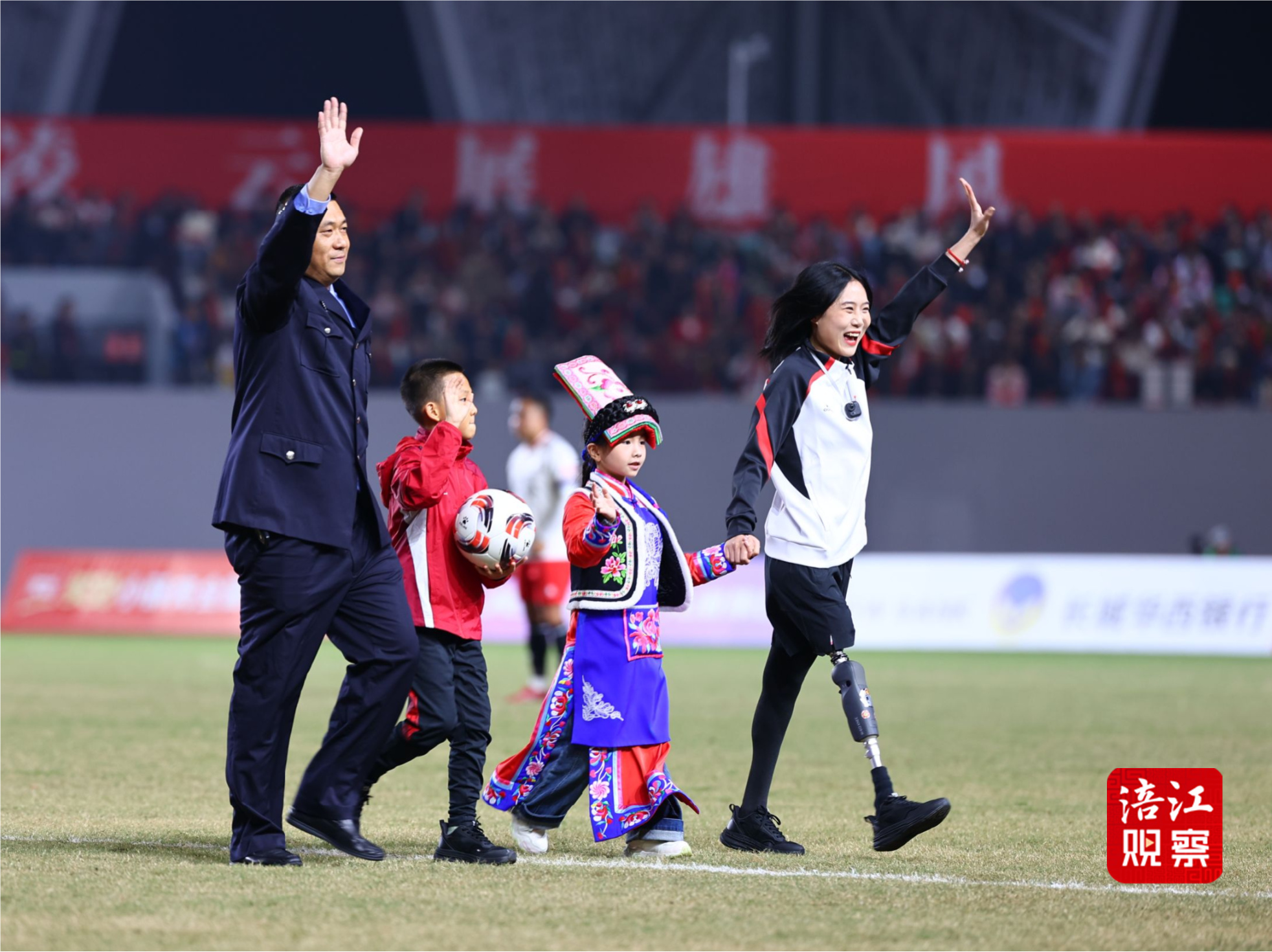 11月1日晚上,2024年度“中国好人”、全国自强模范、北川姑娘牛钰,与山东援建北川干部,中国青年志愿服务银奖、四川省五四青年奖章获得者王鹏,作为开球嘉宾,来到“川超”绵阳主赛场,传递自强追光的信念和无私奉献的精神。
