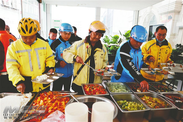 骑手在工会驿站内打餐