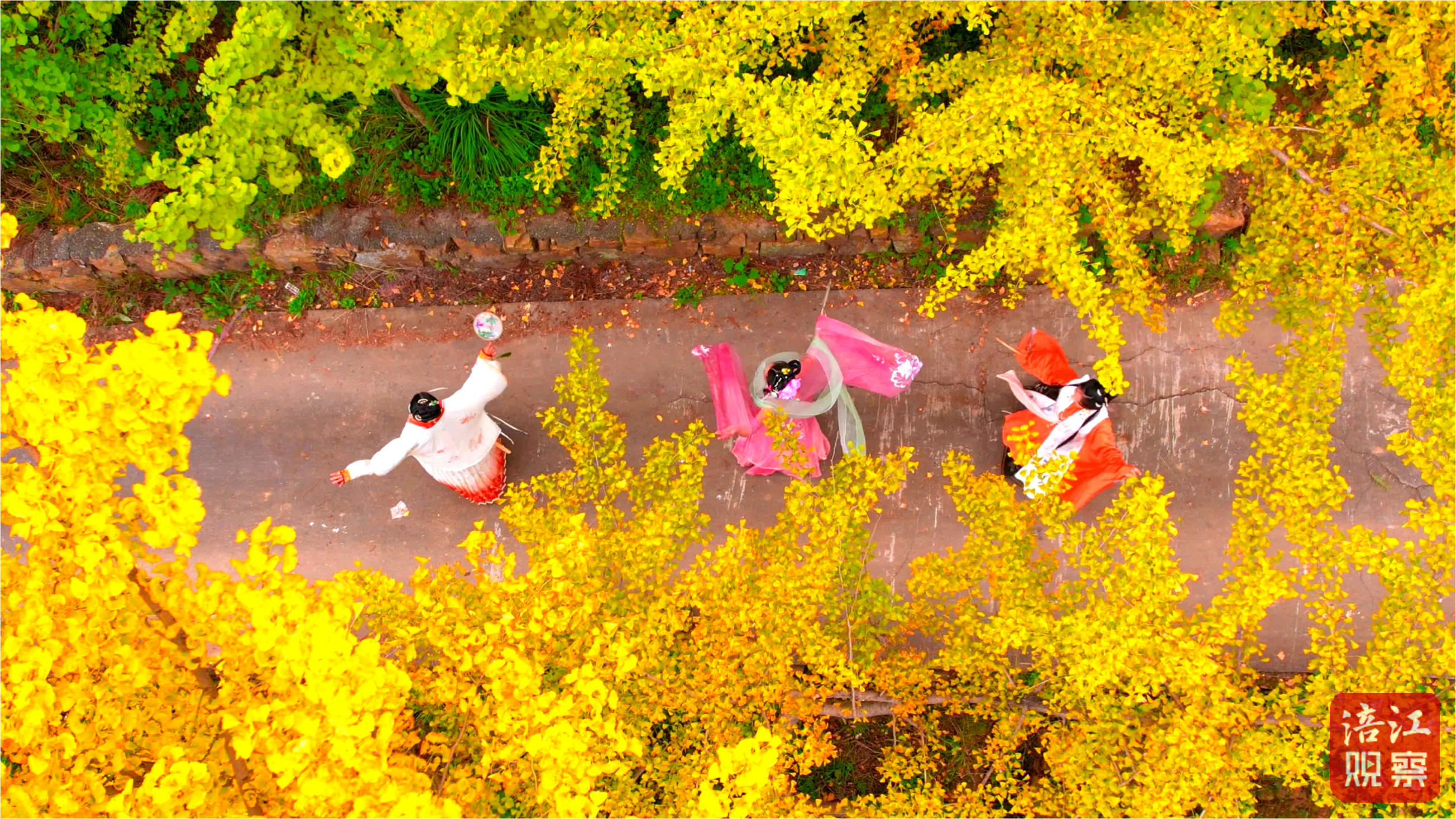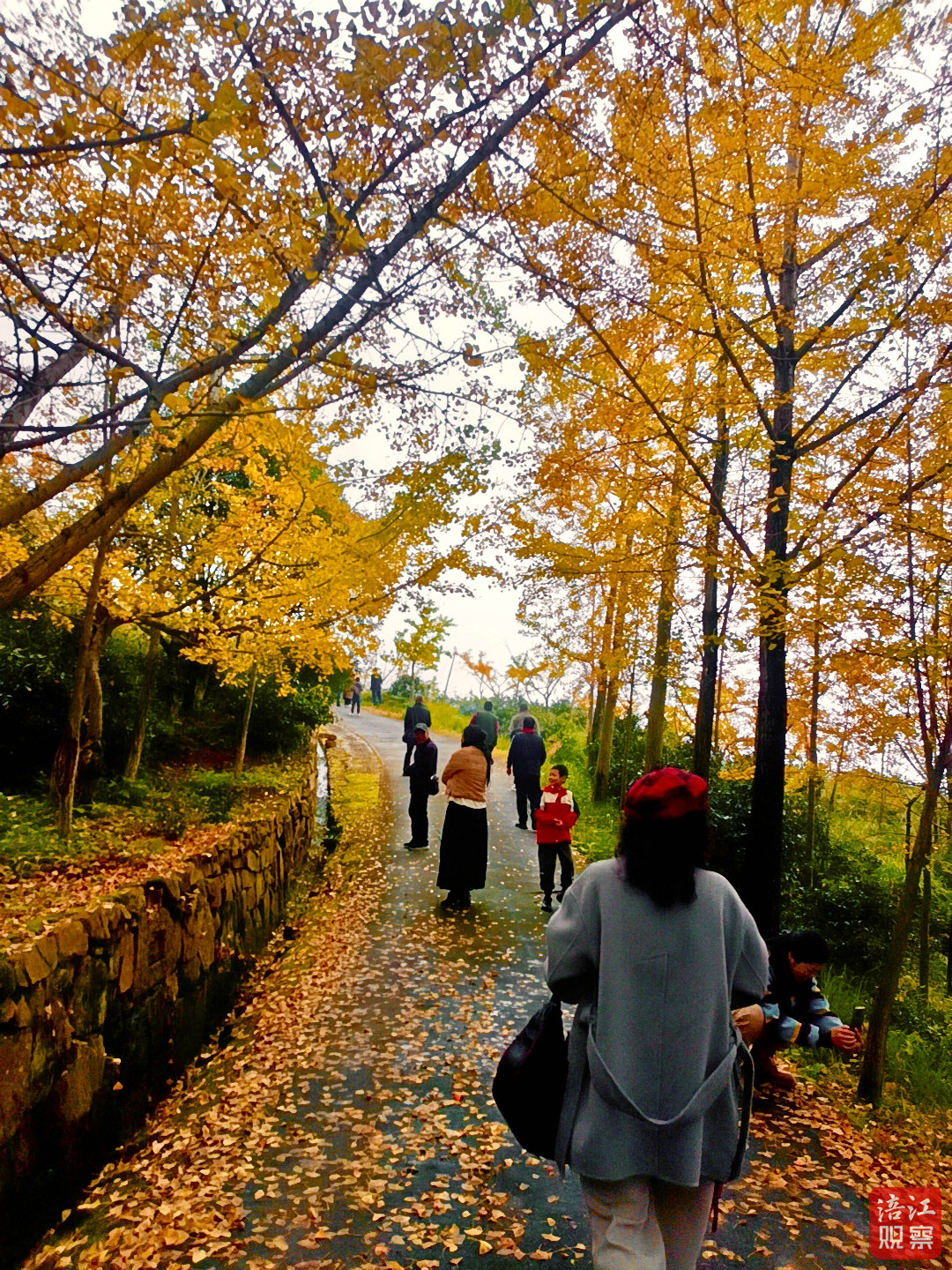 漫步林中,一树树银杏辉煌耀眼,微风拂过,片片凋落的银杏叶如蝴蝶翩翩起舞,铺满林间小道,形成一条金色“地毯”。