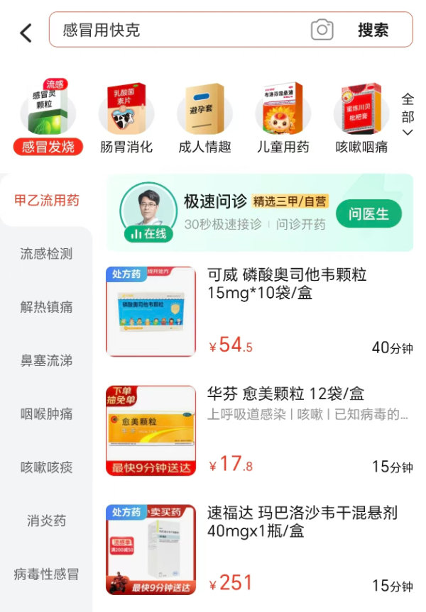 为了让患者少跑腿、不排队,京东互联网医院特别开设发热门诊,全国三甲医生24小时在线,平均30秒响应。用户前往京东APP搜索“问医生”或“发热门诊”,即可随时随地在线问诊咨询,获得用药指导和康复建议。近两周,京东互联网医院流感问诊量环比增长47%。