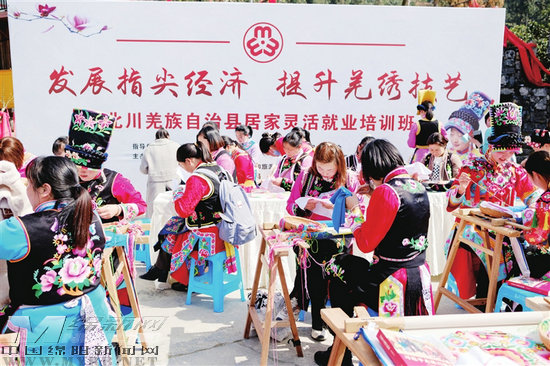 在“振兴工坊”,羌族绣娘任冬梅手中的针线在布料间灵巧穿梭,一幅精美的羌绣图案逐渐成型,“以前做绣活只是个人爱好,现在通过‘振兴工坊’,作品可以卖到全国各地,每月能增收3000多元。”