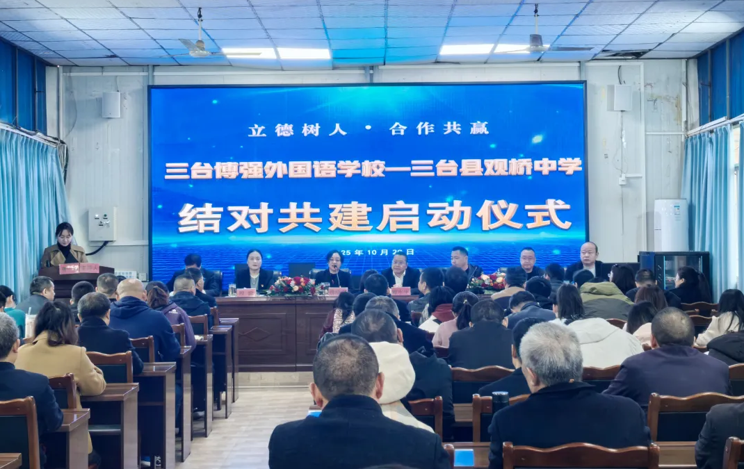 为了探索教育协同发展新路径,近日,三台县“魏晓红名校长工作室”成员、三台博强外国语学校初中部党支部部分党员教师走进三台县观桥中学,开展了以“携手并进 共绘未来”为主题的2025年秋两校结对共建启动仪式暨教学交流活动。双方以“资源共享、管理共进、教研共联、学生共育、文化共融”为宗旨,探索教育发展新路径,携手开启协同发展新篇章。