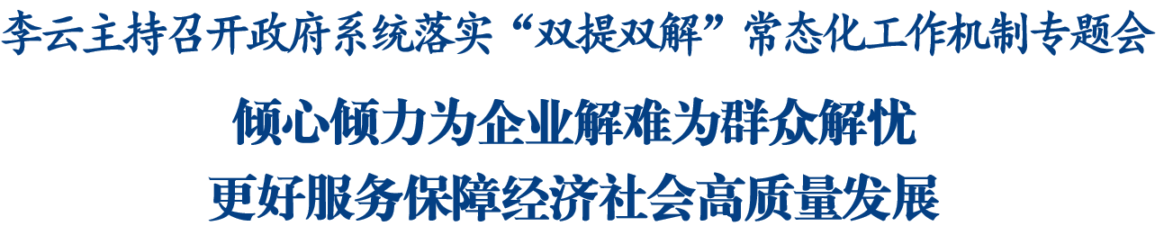 会议听取了政府系统“双提双解”常态化工作机制落实情况汇报,有关部门汇报本领域为企业解难、为群众解忧工作开展情况,与会市领导就下一步工作提出意见建议。会议还就市政府领导班子带头开展“双提双解”工作作出安排部署。会议强调,“双提双解”常态化工作机制是市委立足践行以人民为中心的发展理念,聚焦破解企业和群众急难愁盼问题,着力打通制约高质量发展的堵点难点,全面助推加快建成省域经济副中心而作出的重要部署。各地各部门要提高认识抓落实,坚持把“双提双解”常态化工作机制融入日常、抓在经常,把重点任务、重点工作做透做深做细做实,以更有效率、更有温度的工作,用心用情用力解决好企业群众急难愁盼问题,进一步密切党群干群关系,更好服务企业、服务群众、服务基层。