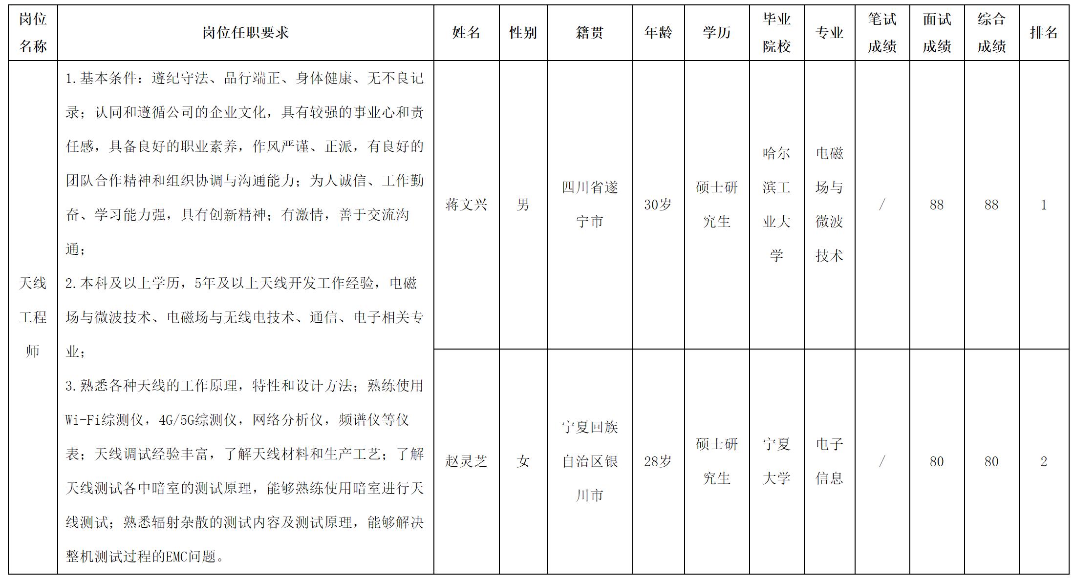 根据四川爱联科技股份有限公司发布的招聘公告及招聘相关规定,现将测试成绩予以公示。
