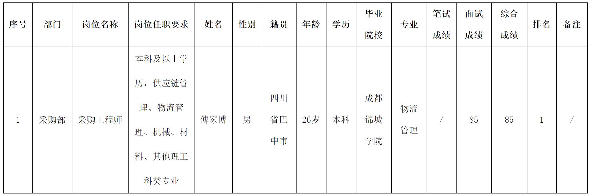 根据四川波鸿实业有限公司发布的招聘公告及招聘相关规定,经面试等程序,现将面试成绩予以公示。