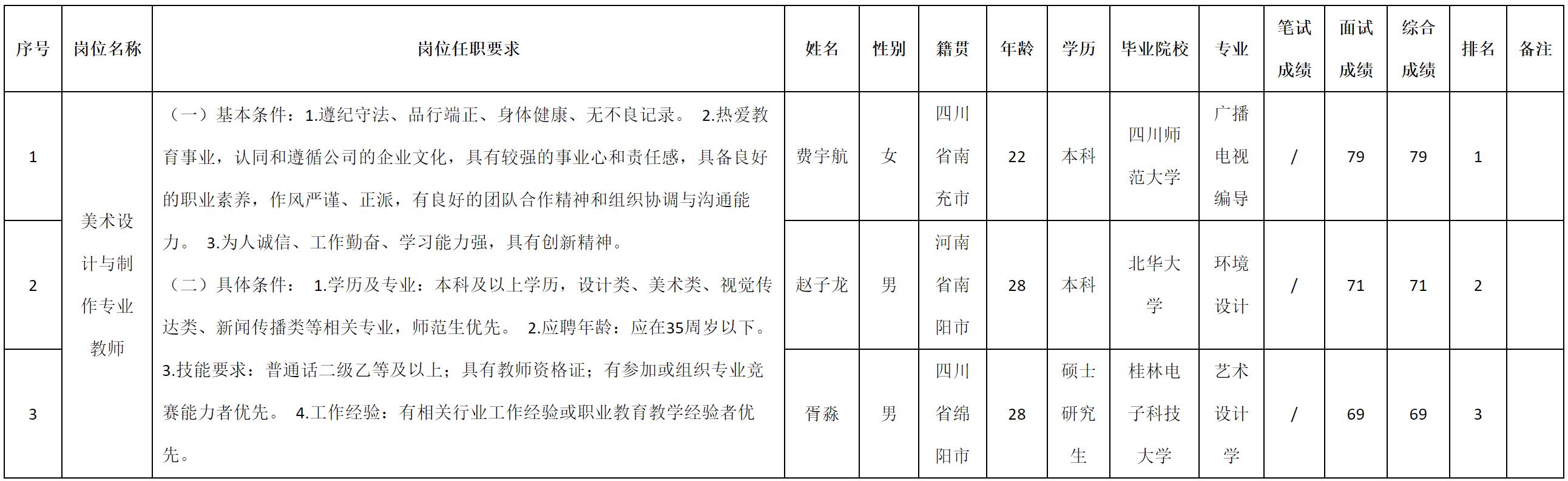 根据四川九洲教育投资管理有限公司发布的招聘公告及招聘相关规定,现将测试成绩予以公示。