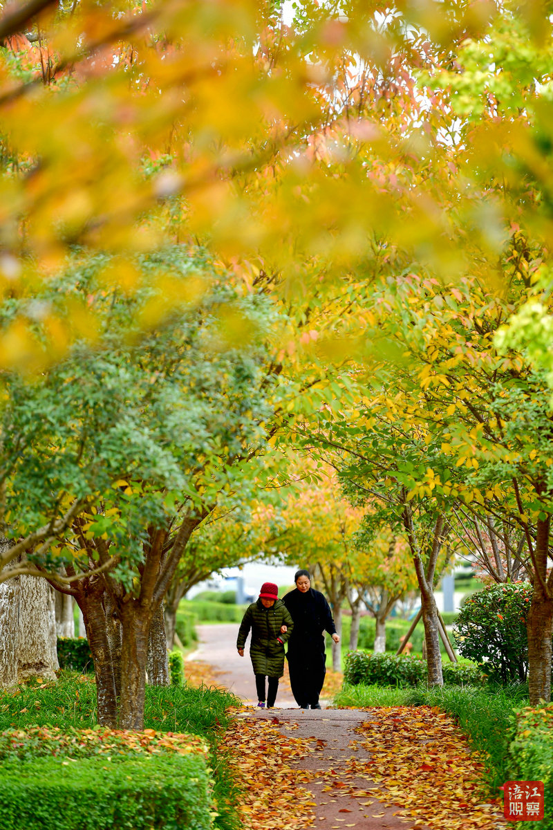 健康步道上,市民漫步休闲