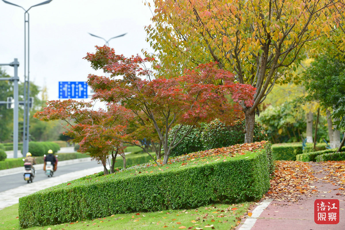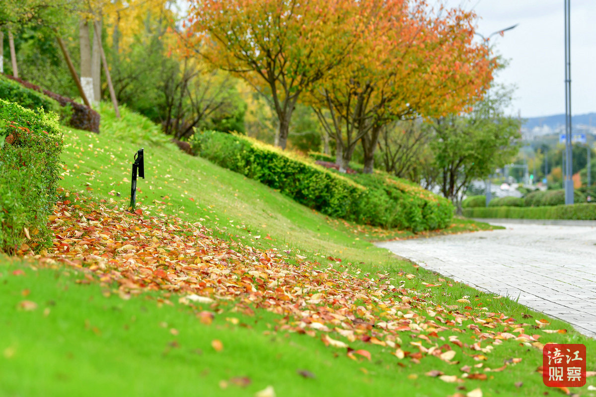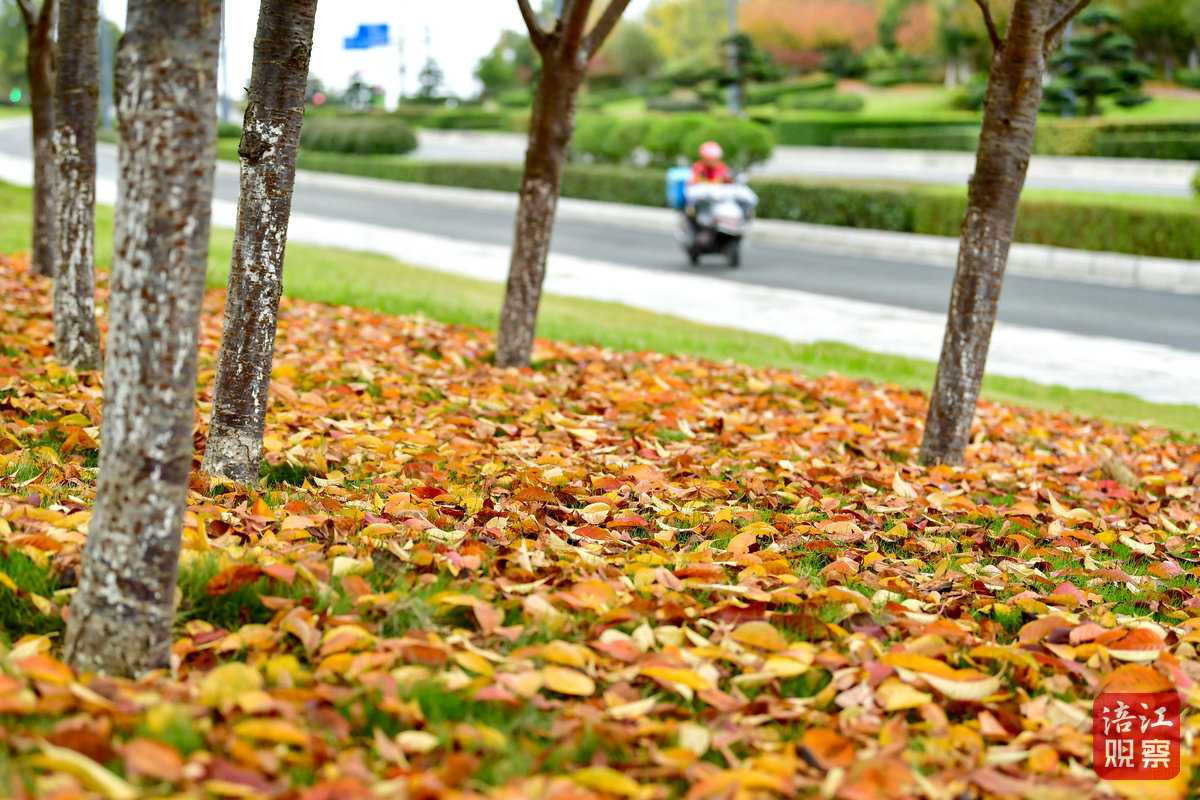 红枫如火,落叶覆地