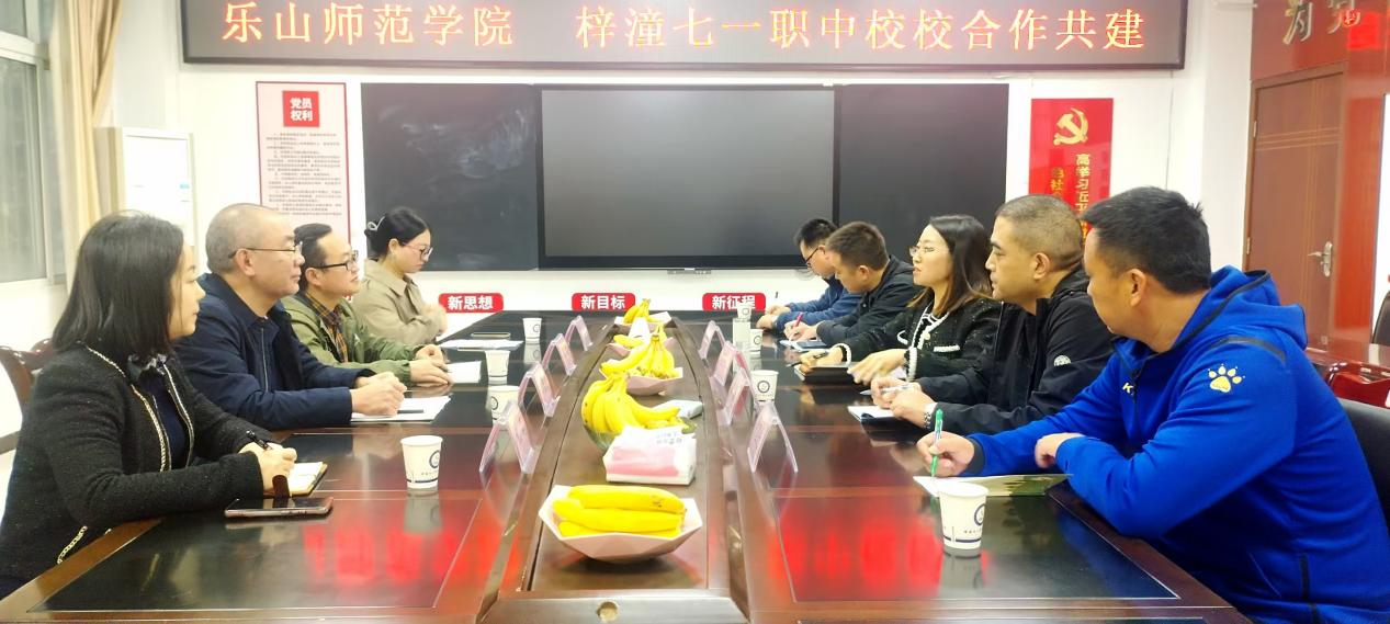近日,乐山师范学院校地合作处处长杜理才、继续教育学院院长南麒,干部祝莉、罗晓娟一行莅临梓潼县“七一”高级职业中学校,开展了以“深化校校合作 共谱教育发展新篇”为主题的考察交流调研活动。该校党支部书记、校长梁金蓉,副校长陈超陪同调研并参加座谈会。双方深入交流探索“中职—高校”合作办学新模式,为职业教育与高等教育的协同发展注入新动力。