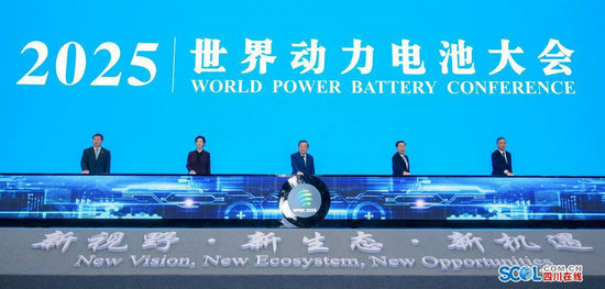 10时50分许,万钢、王晓晖、施小琳、辛国斌、束为共同按下启动装置,2025世界动力电池大会开幕。