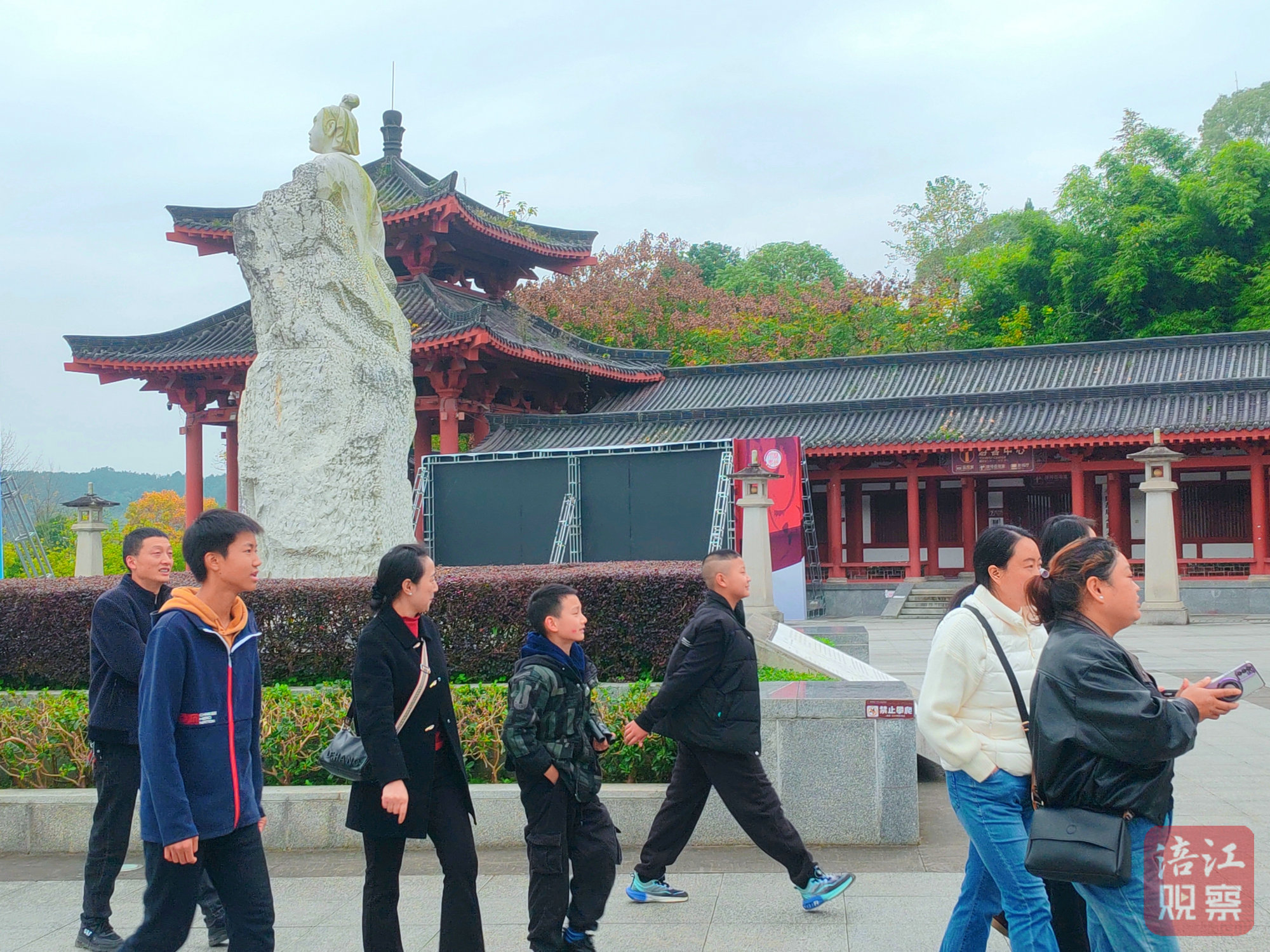 在李白纪念馆的楼台亭榭间,游客络绎不绝。讲解员的一路解说,激起一串串感叹,交织成一曲生动的“文化交响乐”。