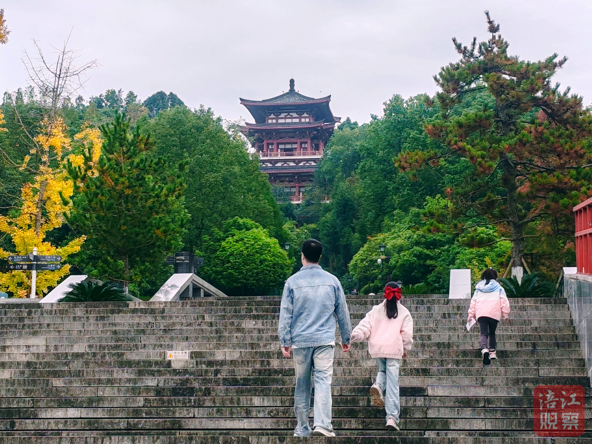 冯女士是江油本地人,当天也带着两个孙女来游玩。她说:“娃娃父母要上班,我就带她们来玩,正好天气不冷也不热,景色也美……”