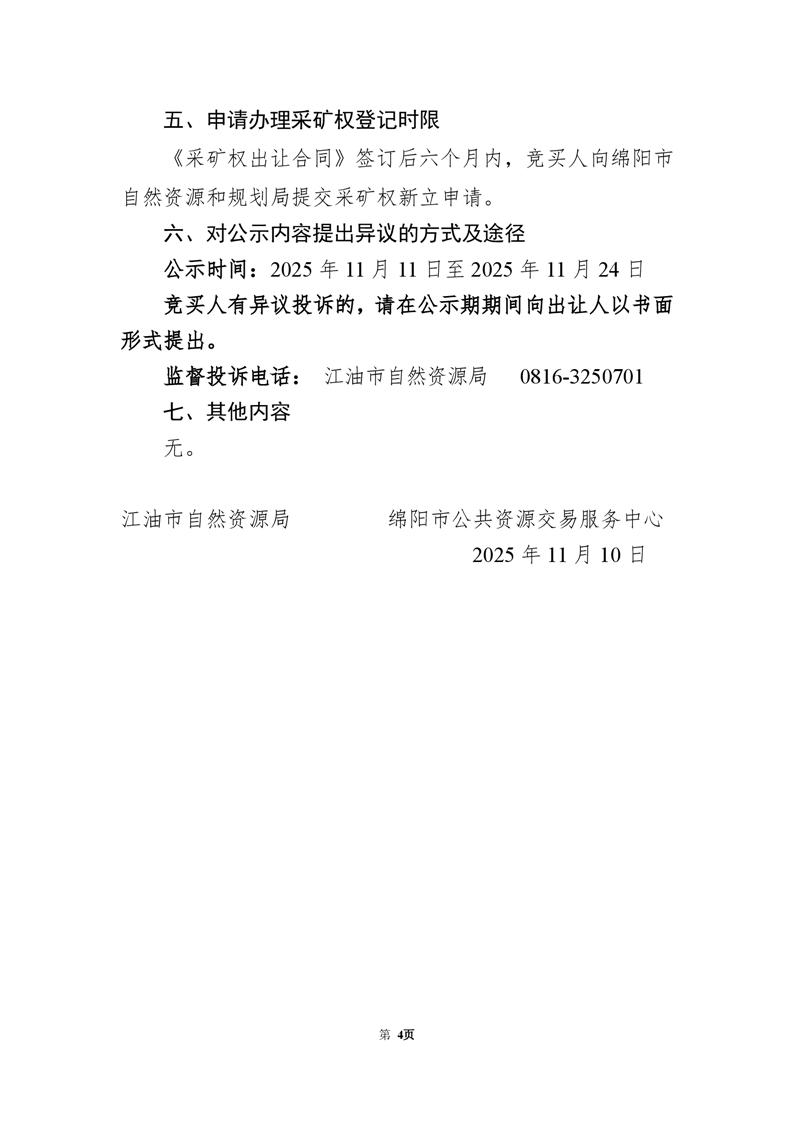 江油市马角镇大圆包建筑石料用白云岩石灰岩矿采矿权拍卖出让成交结果公示(绵矿招拍挂〔2025〕6号)