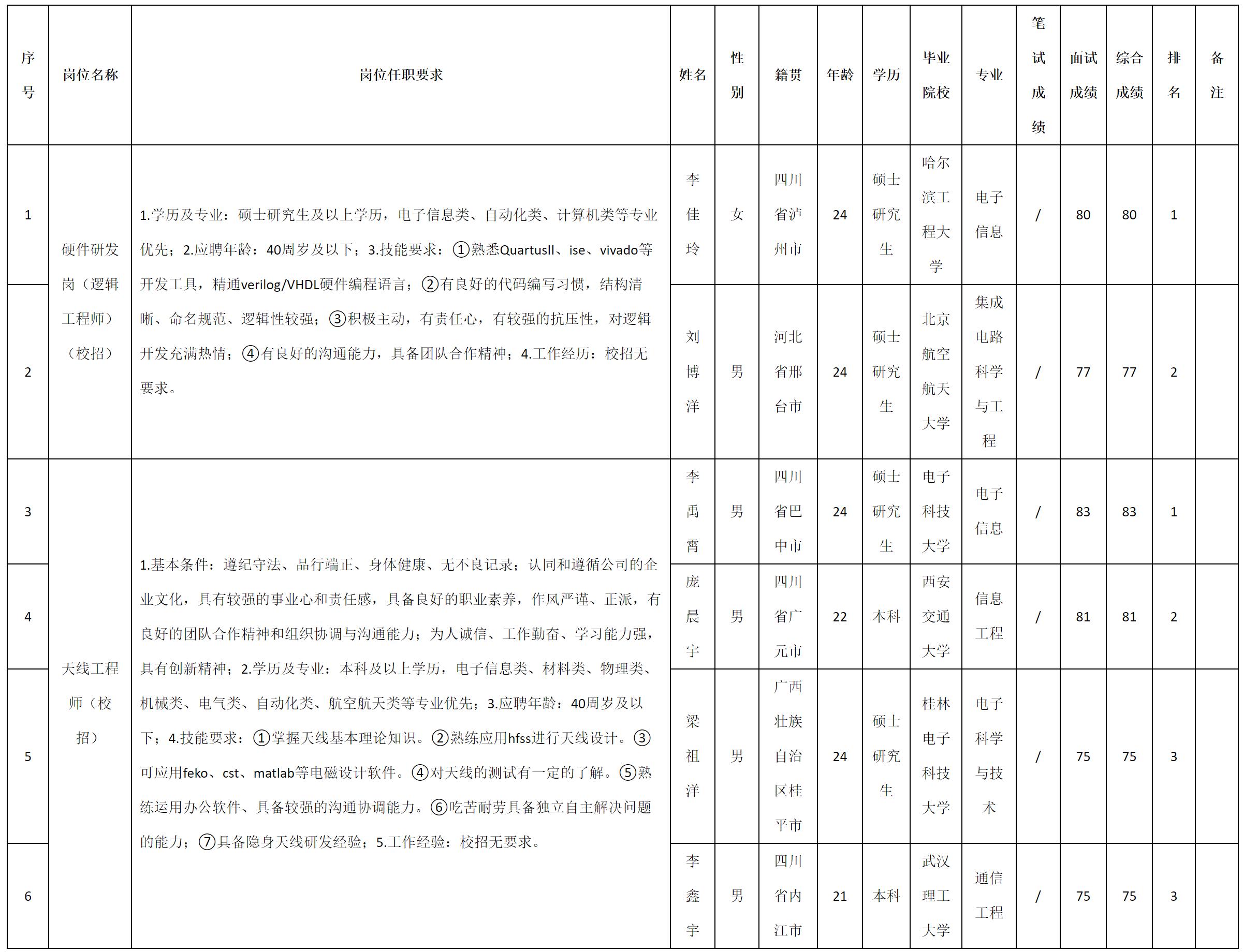 根据四川九洲电器集团有限责任公司发布的招聘公告及招聘相关规定,现将测试成绩予以公示。