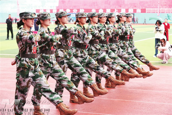 参赛队员们精神抖擞、步伐整齐。 记者 胥江 摄
