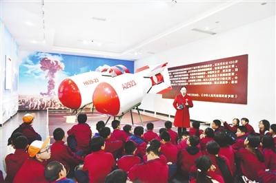 秋假期间,两弹城迎来研学热潮,每天都有省内多批研学团队来到这里,处处洋溢着青春活力。