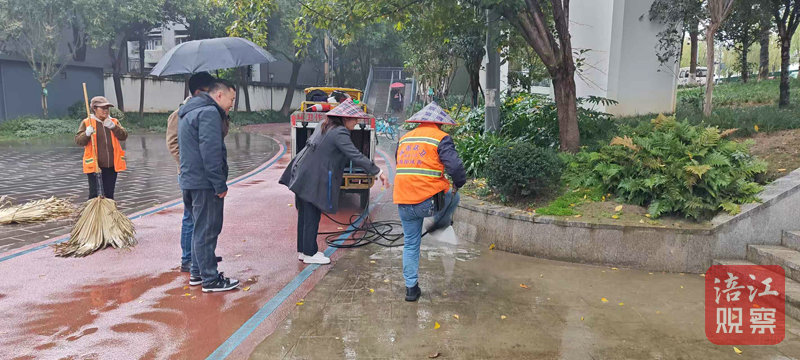 截至记者发稿,施工单位已使用高压水枪对青苔和泥泞路面进行了初步清理,以缓解当前的滑倒隐患。