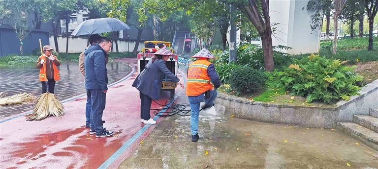 截至记者发稿,施工单位已使用高压水枪对青苔和泥泞路面进行了初步清理,以缓解当前的滑倒隐患。