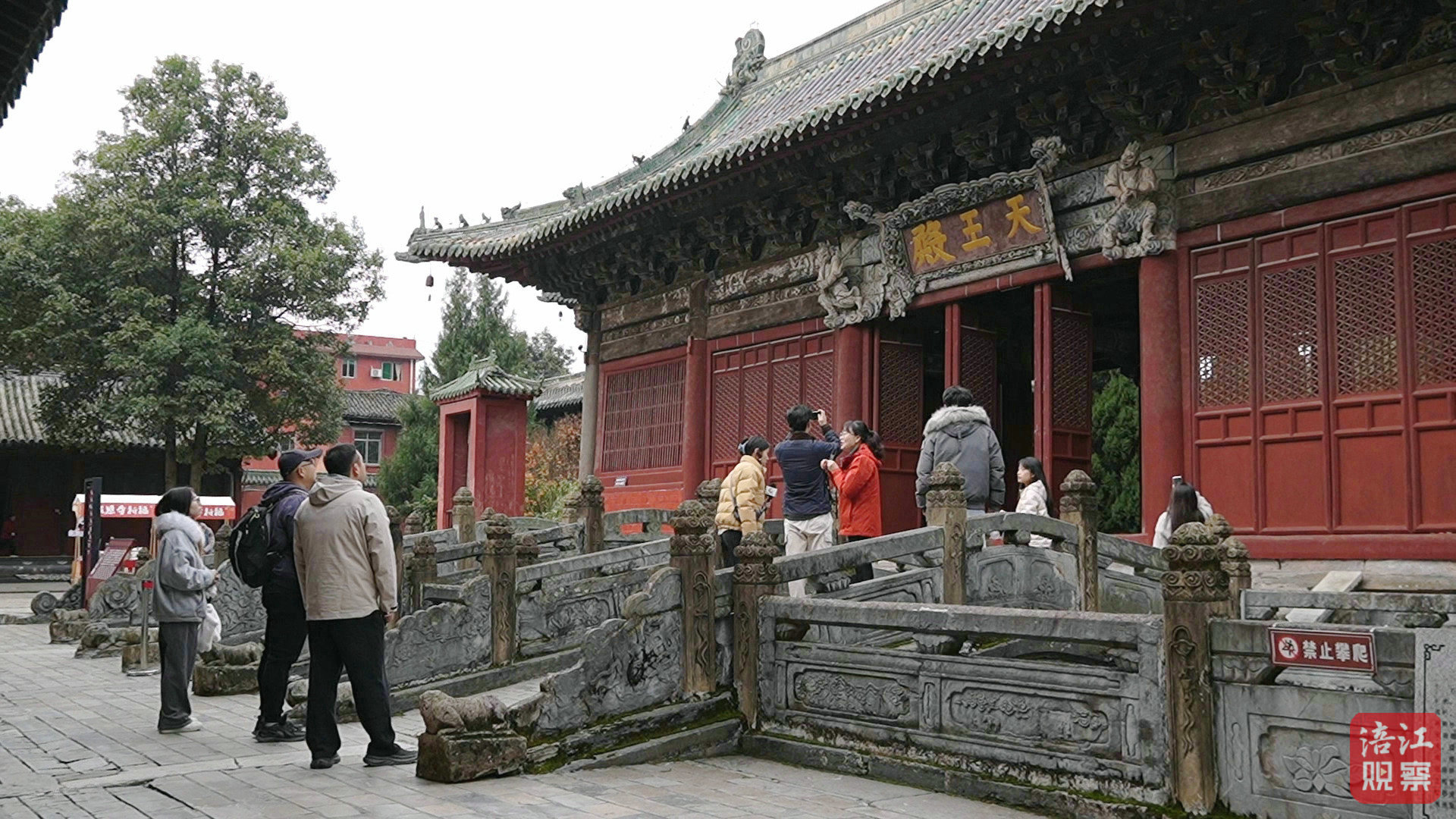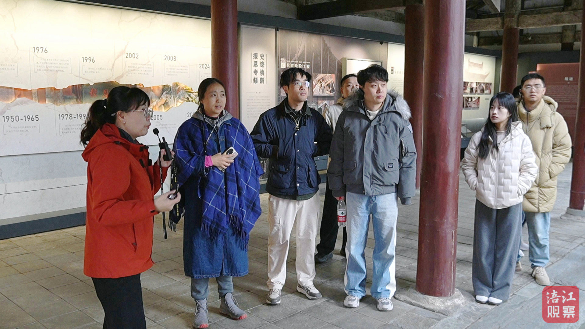 媒体记者们的镜头追随着彩绘壁画的细腻笔触、转轮经藏的古朴纹路缓缓移动,笔端记录着千手观音的庄严神态与斗拱的精巧构造,不时向讲解人员询问古建筑保护细节与文旅融合路径,在飞檐风铃的清响中,探寻这座大明遗珠的过往与新生。