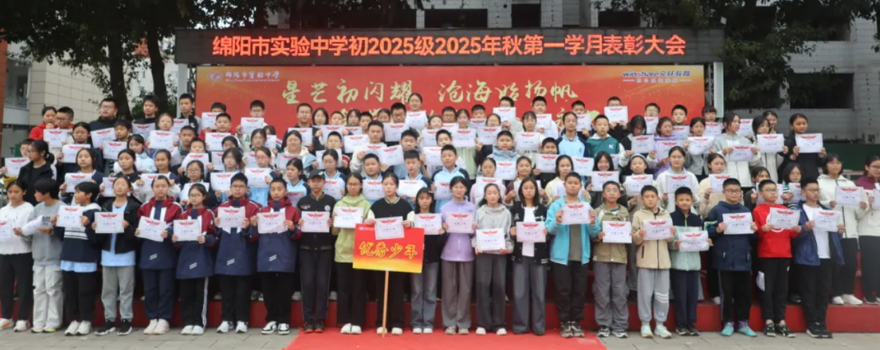 绵阳新闻网讯 为了表彰先进,激发学生学习斗志,近日,绵阳市实验中学(绵阳七中)举行了以“以笃学致远方 以奋进赴山海”为主题的2025年秋初2024级第一学月表彰大会,2024级全体师生齐聚一堂,共同迎来这个属于奋斗、属于收获的耀眼时刻!