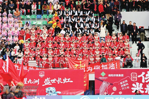 50对新人在川超赛场为绵阳队加油助威。 记者 陈冬冬 摄