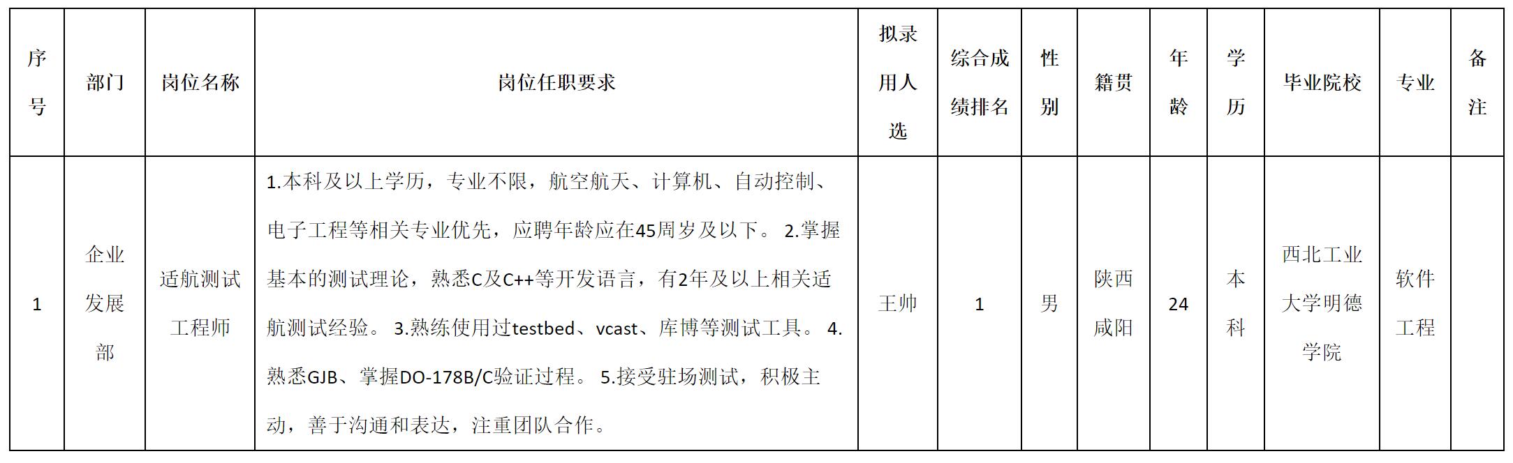 根据四川九洲投资控股集团有限公司软件与数据智能军团发布的招聘公告及招聘相关规定,经测试、考察、体检等程序,拟录用王帅同志到四川九洲投资控股集团有限公司软件与数据智能军团工作,现予以公示,具体情况如下: