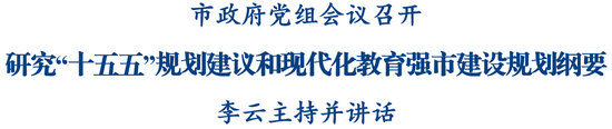 绵阳新闻网讯 11月24日,市政府党组会议召开,研究“十五五”规划建议和现代化教育强市建设规划纲要。市委副书记、市政府党组书记、市长李云主持会议并讲话。