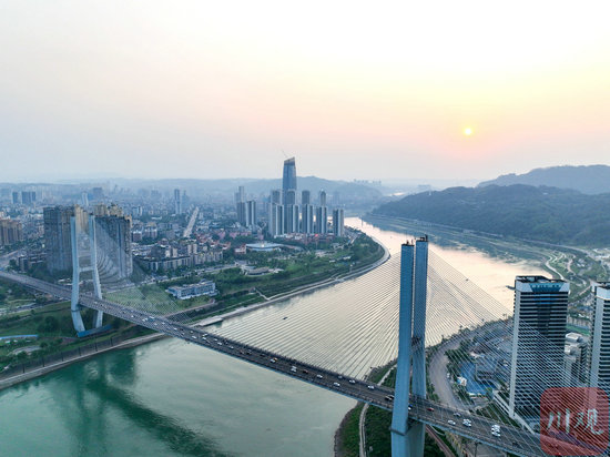 俯瞰长江两岸宜宾城市景观。 罗顺 摄